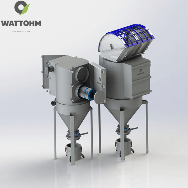En fonction des contraintes d’encombrement, le dépoussiéreur à cartouches peut être installé à proximité des moyens de production, grâce à un niveau sonore très faible, ou dans un local technique situé plus loin, grâce à des ventilateurs Haute Pression. Tous les matériels sont équipés d’un variateur de fréquence permettant d’adapter le couple débit/pression au réseau du client.